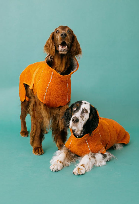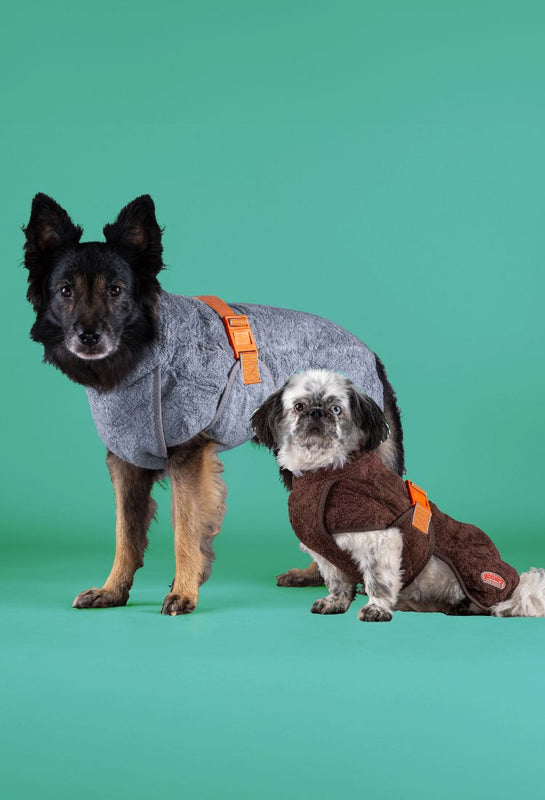 Mehr lesenUnsere Hundebademäntel werden in enger Zusammenarbeit mit unseren Kunden entwickelt und an lokalen Hunden getestet, um die perfekte Passform zu gewährleisten. Mit Größen von 25 bis 80 bieten unsere Bademäntel Komfort für jede Rasse – vom kleinen Terrier bis zum großen Neufundländer!