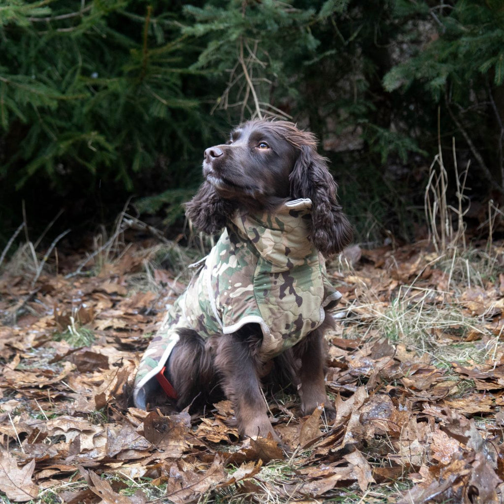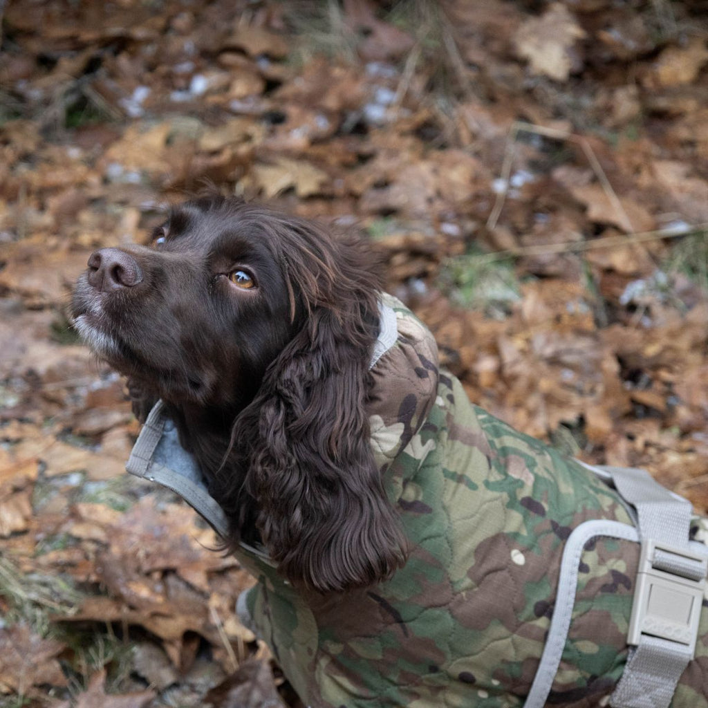 Um Ihren Hund abzukühlen: Weichen Sie den Spirit Pro in kaltem Wasser ein, wringen Sie das überschüssige Wasser aus dem Mantel und ziehen Sie ihn dem Hund für ca. 30 Minuten an. Denken Sie daran, den Hund im Auge zu behalten.